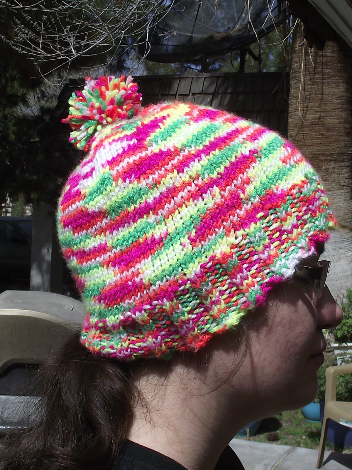 The main body of the blanket is Stockinette stitch with a boarder of Seed Stitch. I put the "O"s on using Duplicate Stitch.